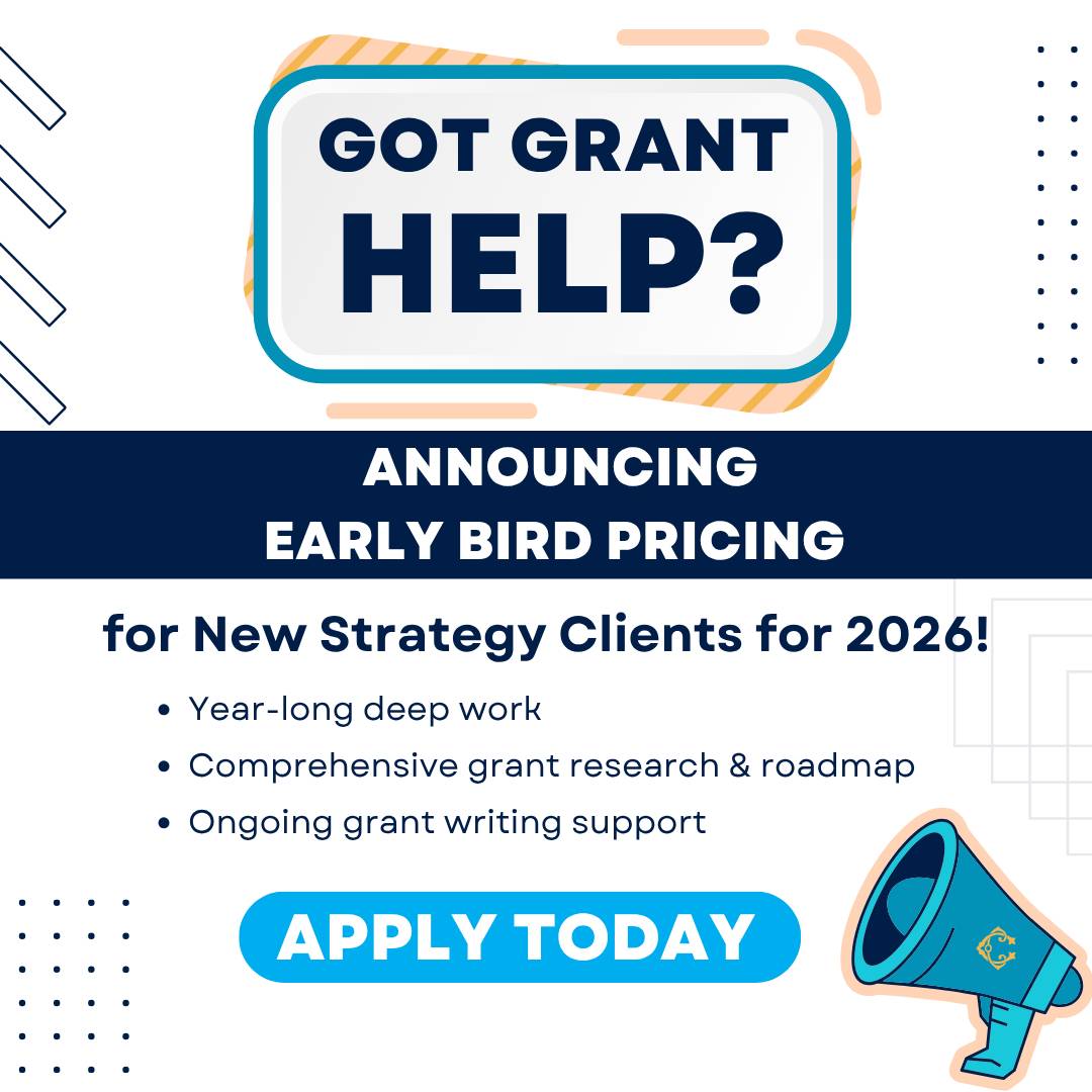 ⏳ The countdown is on… Are you ready to jumpstart your 2026 funding strategy? If getting organized for grant season has been sitting on your to-do list, now is the moment to move. Every year, organizations miss out on hundreds of thousands—and sometimes millions—in potential funding simply because they don’t have the time or expertise to navigate the ever-changing grant landscape. To set you up for success, we’re opening a limited number of discounted Strategy Client spots* for organizations...